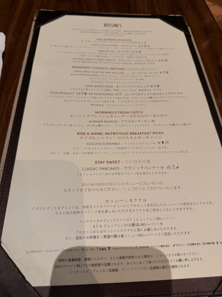 「Rossini’s」のエグゼクティブなブレックファストが最高でした